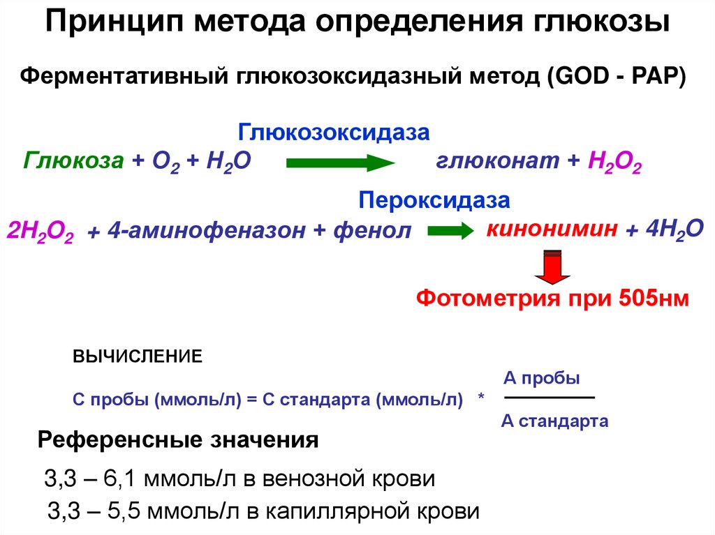 Принцип метода определения глюкозыФерментативный глюкозоксидазный метод (GOD - PAP)