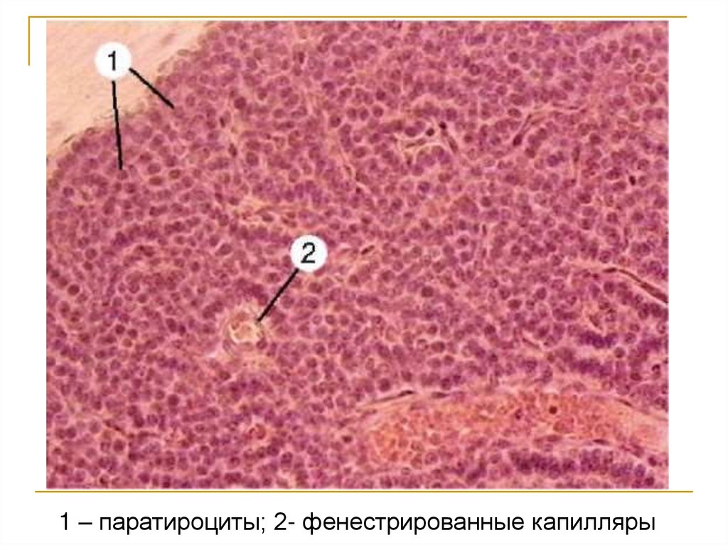 1 – паратироциты; 2- фенестрированные капилляры13.