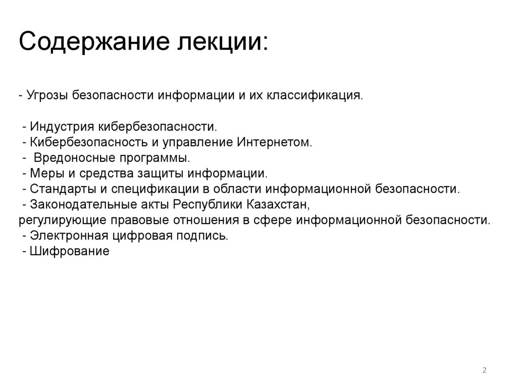 Содержание лекции:- Угрозы безопасности информации и их классификация.
