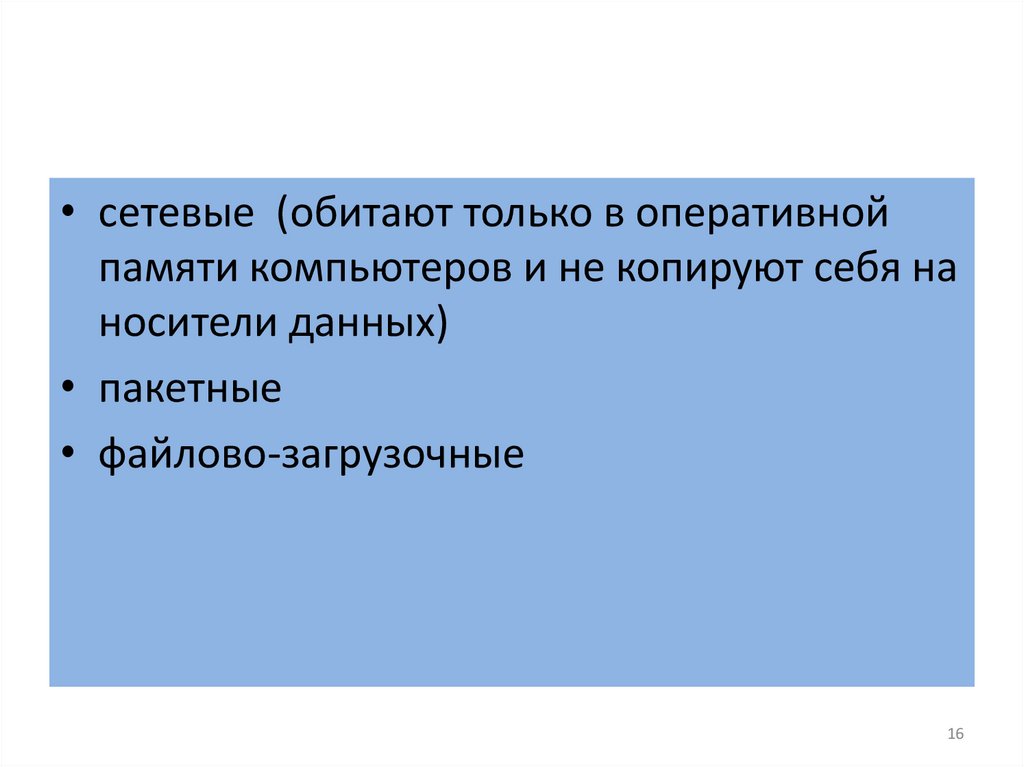 • Файловые (Тип вирусов, которые поражаютисполнимые файлы)