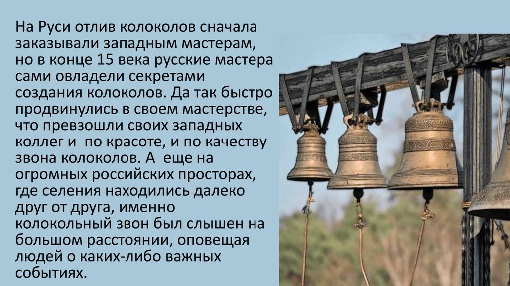 На Руси отлив колоколов сначалазаказывали западным мастерам,