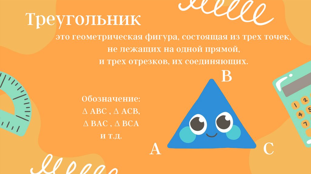 Треугольникэто геометрическая фигура, состоящая из трех точек,