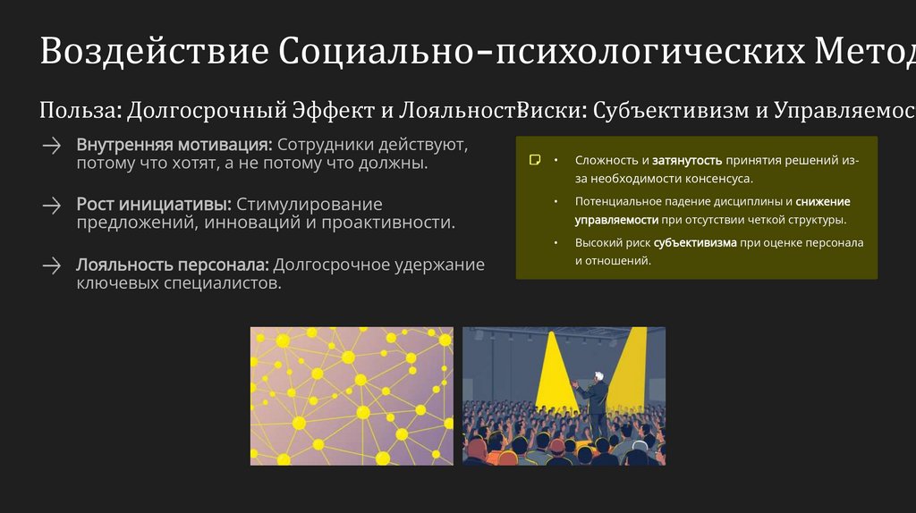 Эти методы фокусируются на внутренних мотивах, ценностях и отношениях сотрудников,