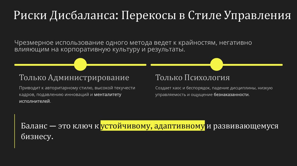 Риски Дисбаланса: Перекосы в Стиле УправленияЧрезмерное использование одного метода ведет к крайностям, негативно
