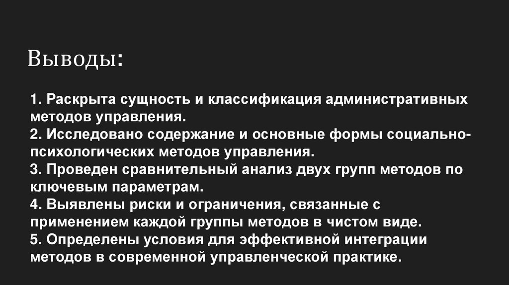 методов в современной управленческой практике.