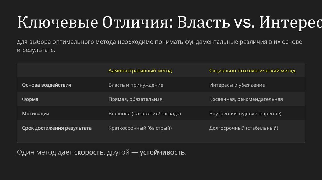 Ключевые Отличия: Власть vs. ИнтересДля выбора оптимального метода необходимо понимать фундаментальные различия в их основе