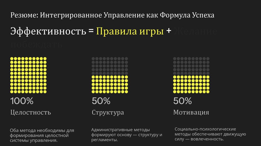 Резюме: Интегрированное Управление как Формула УспехаЭффективность = Правила игры + Желание