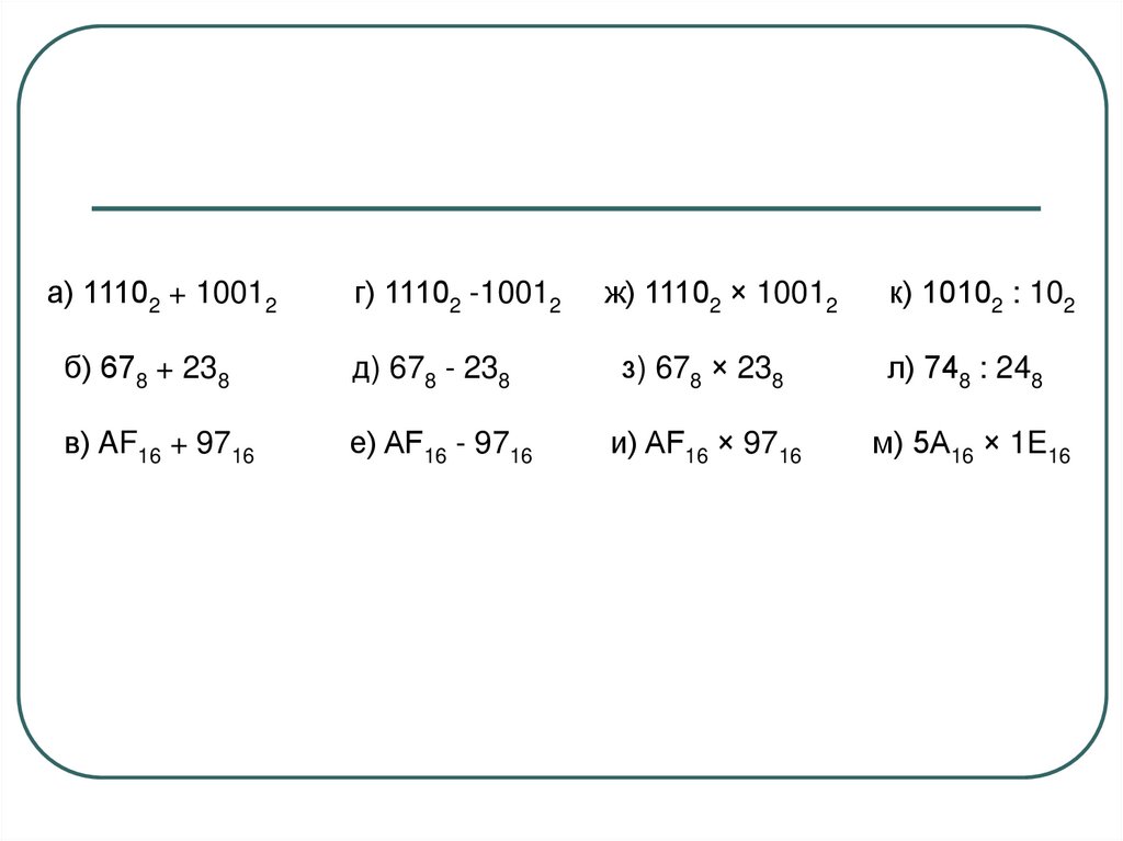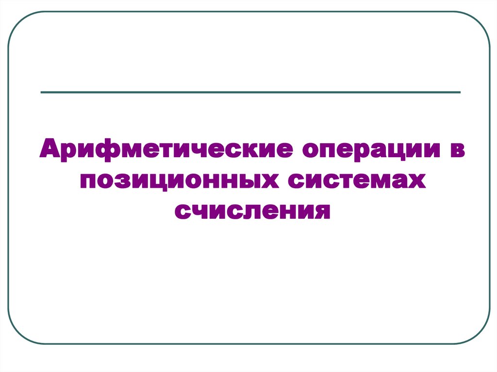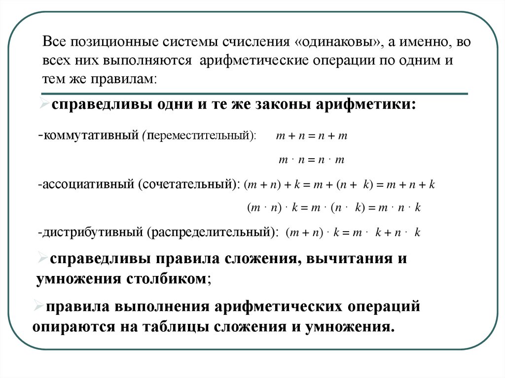 Все позиционные системы счисления «одинаковы», а именно, вовсех них выполняются арифметические операции по одним и