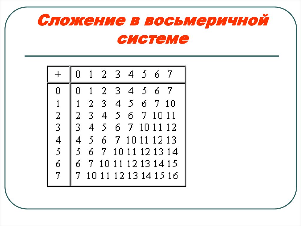 5. ТАБЛИЦА СЛОЖЕНИЯ