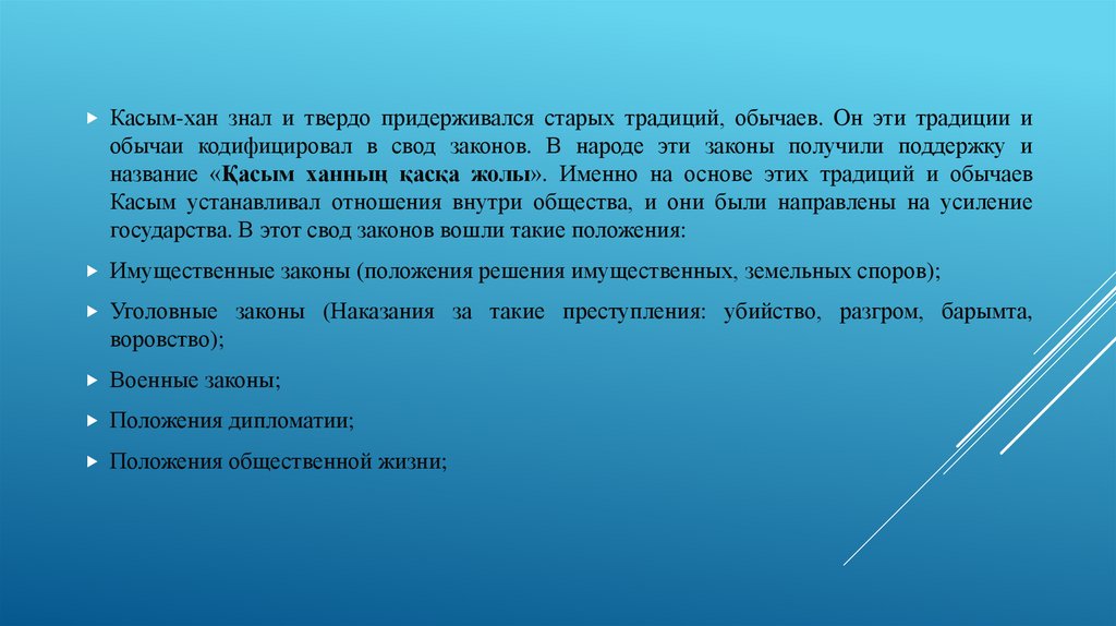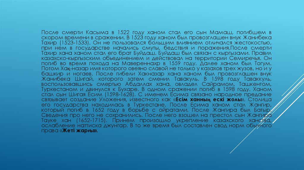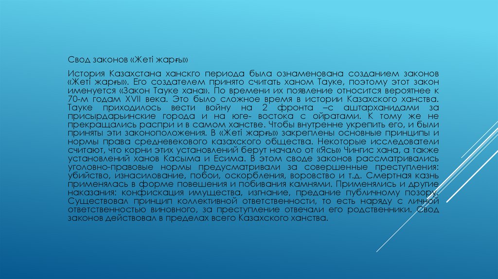 Свод законов «Жеті жарғы»История Казахстана ханскго периода была ознаменована созданием законов