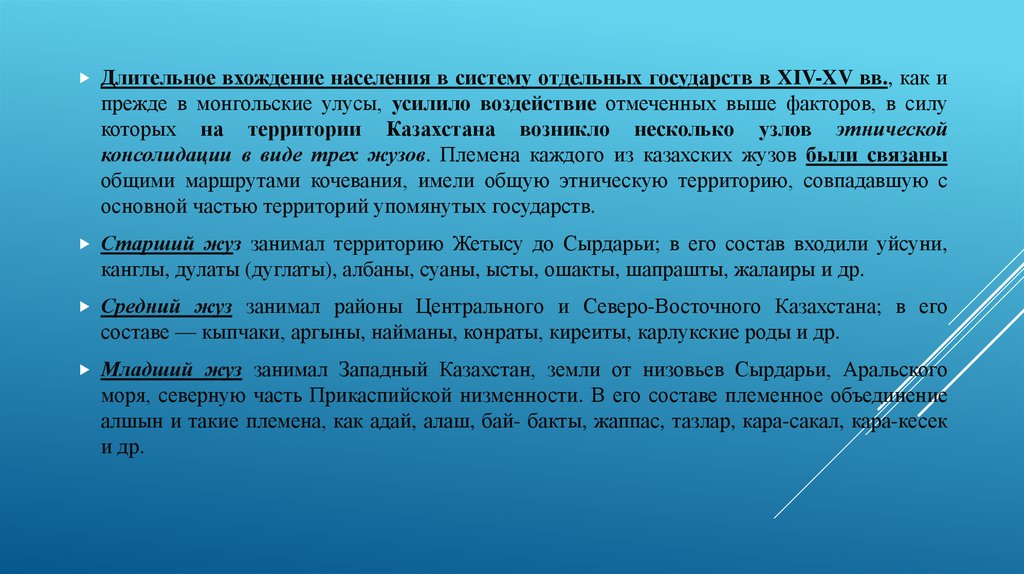 Казахстана, сделать вывод, что в XIV-XV веке формирование казахской
