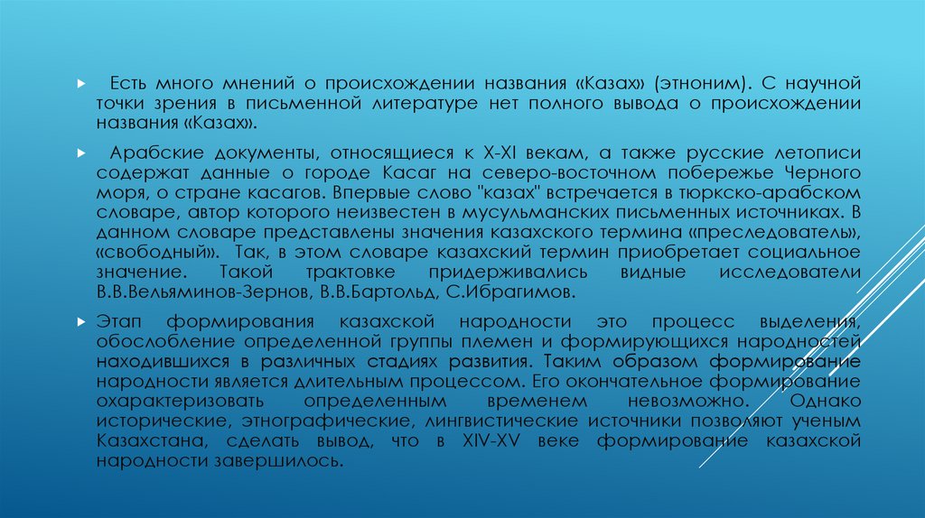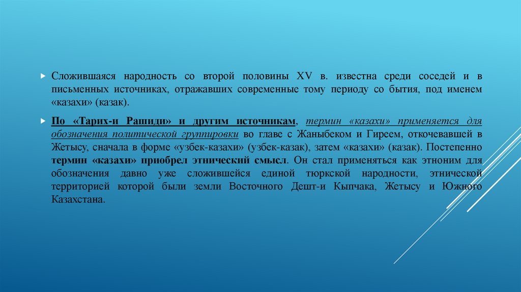 моря, о стране касагов. Впервые слово "казах" встречается в тюркско-арабском