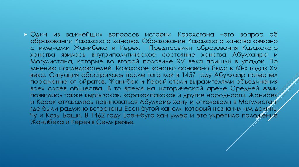мнению исследователей, Казахское ханство основано было в 60-х годах XV