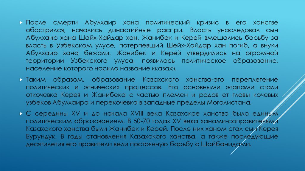 Послесмерти Абулхаир хана политический кризис в его ханстве