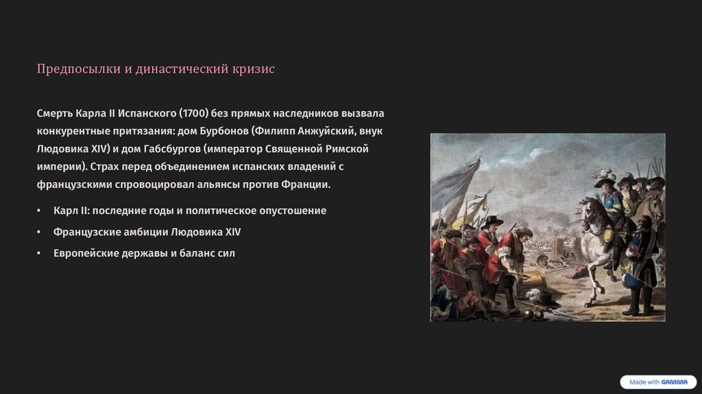 Предпосылки и династический кризисСмерть Карла II Испанского (1700) без прямых наследников вызвала