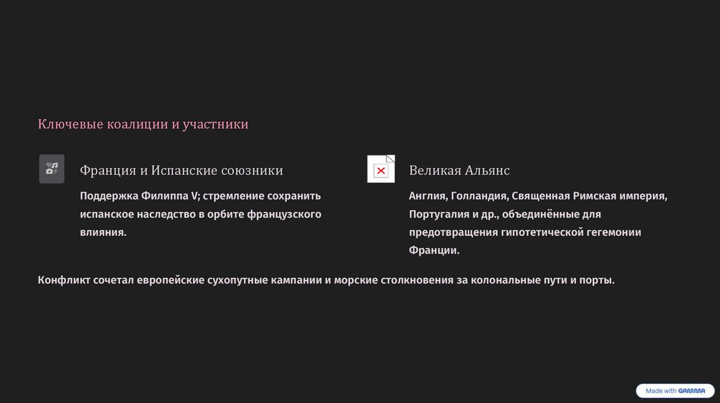 Ключевые коалиции и участникиФранция и Испанские союзники