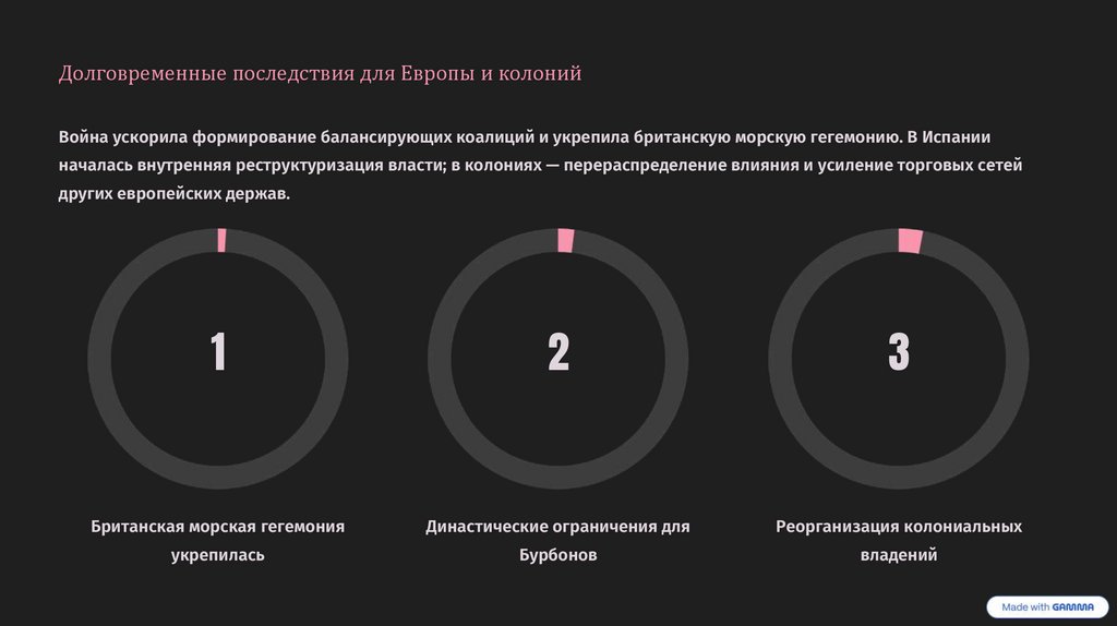 Долговременные последствия для Европы и колонийВойна ускорила формирование балансирующих коалиций и укрепила британскую морскую гегемонию. В Испании