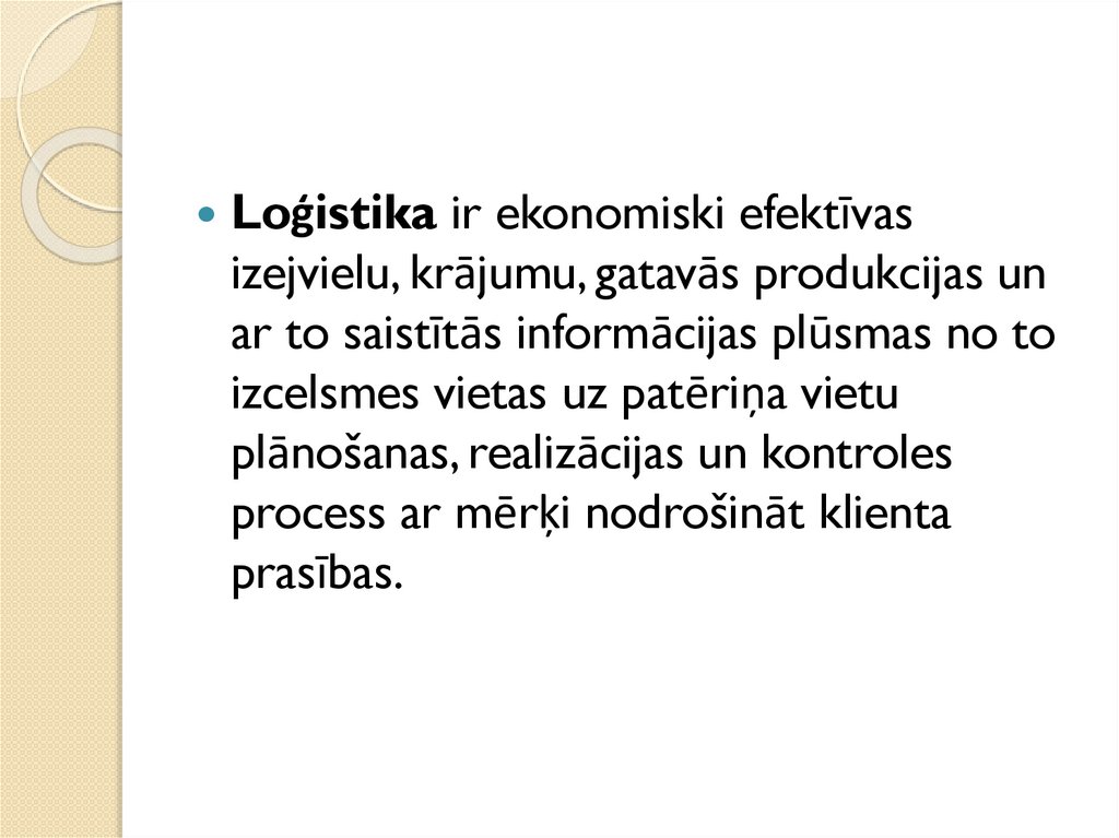 Loģistika ir ekonomiski efektīvasizejvielu, krājumu, gatavās produkcijas un
