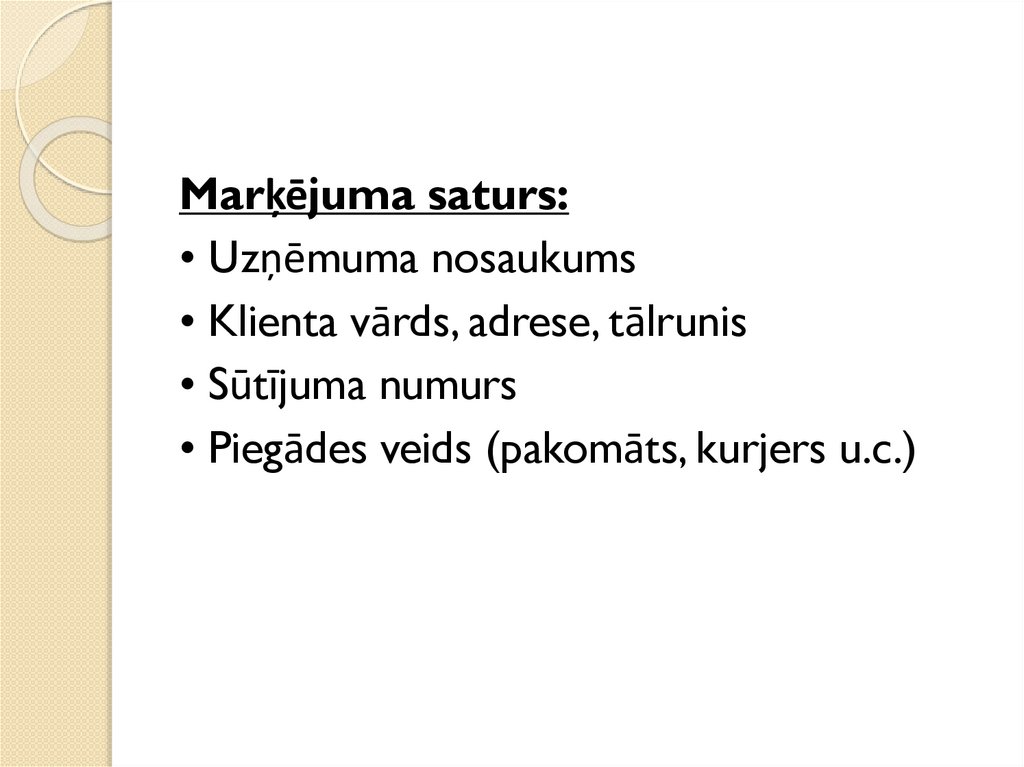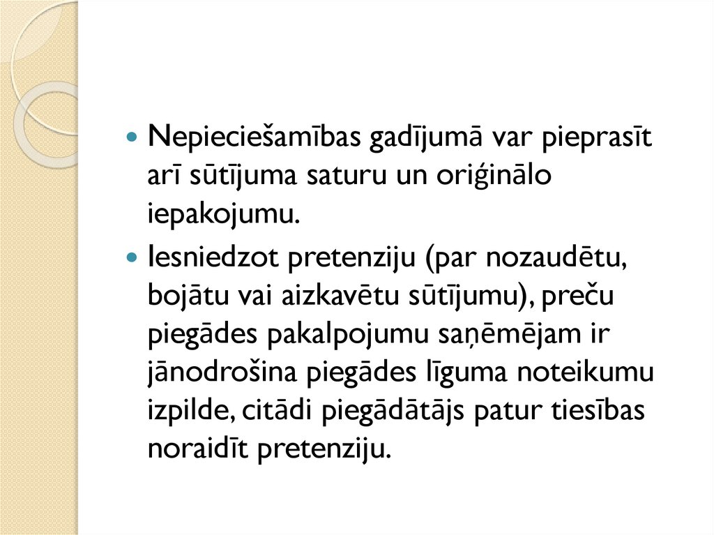 iepakoju jāinformē, ka vēlaties veikt sūtījuma satura