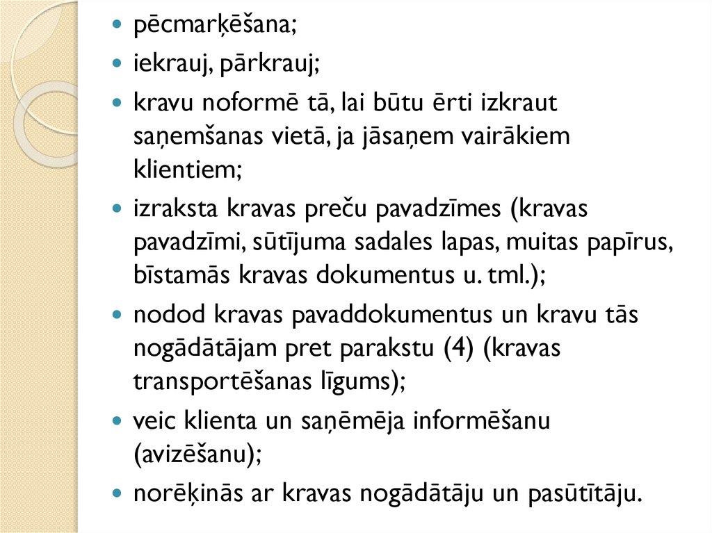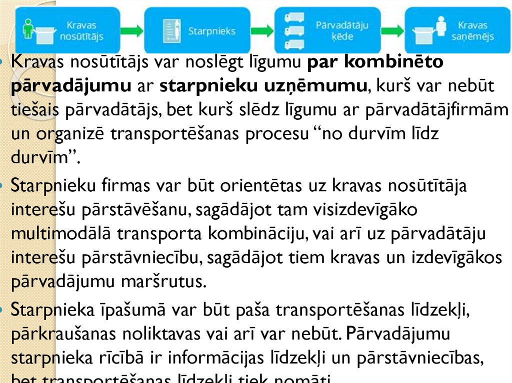 Transportēšana - preču pārvadāšana starp visieminfrastruktūras objektiem.