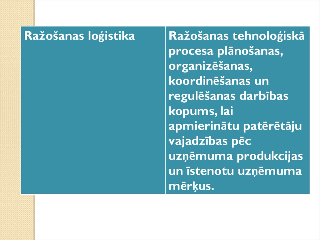 Ražošanas loģistikaRažošanas tehnoloģiskā