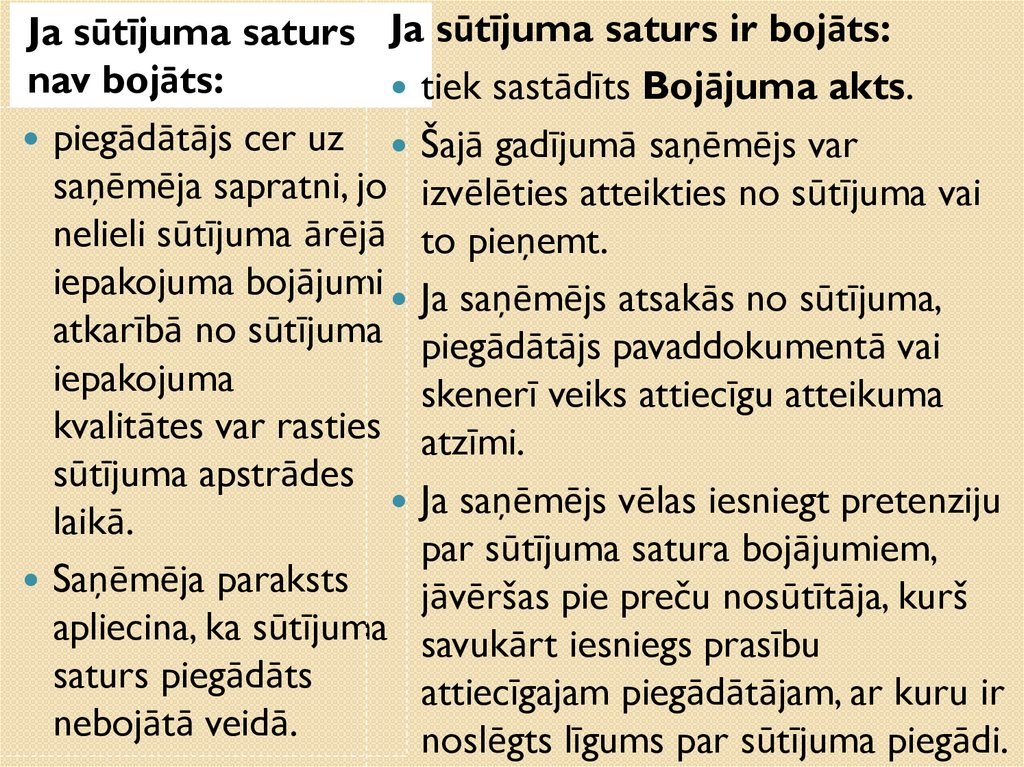 bojājumu pie saņēmēja. Ja saņēmējs vēlas iesniegt