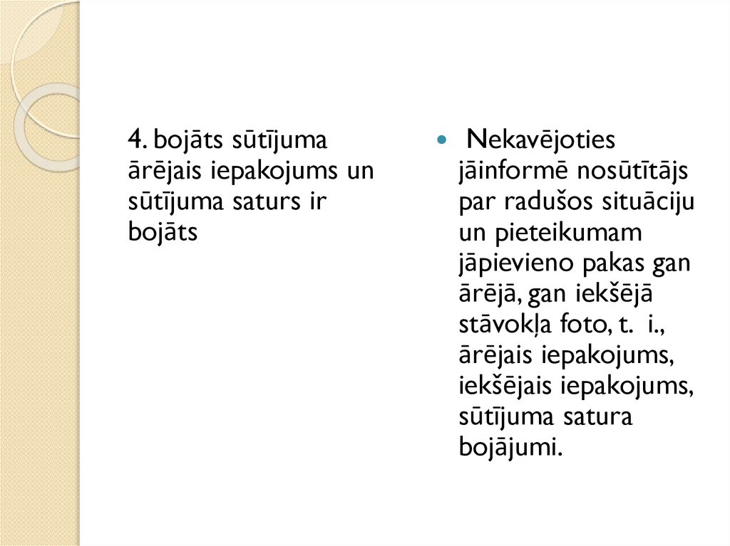 3. bojāts sūtījuma ārējaisiepakojums un sūtījuma