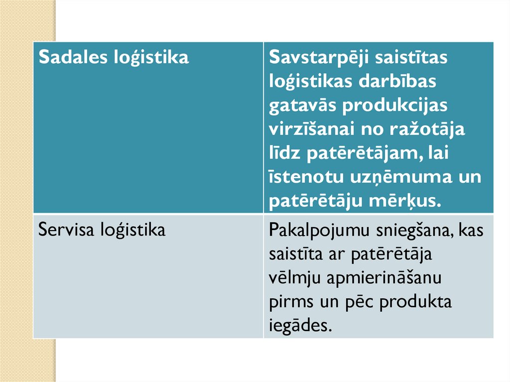 Loģistikas darbības galvenaisuzdevums ir nodrošināt, lai
