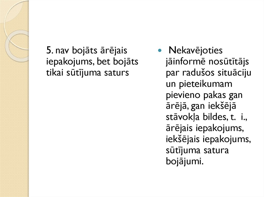 5. nav bojāts ārējaisiepakojums, bet bojāts
