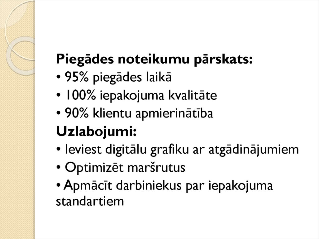 Piegādes noteikumu pārskats:• 95% piegādes laikā