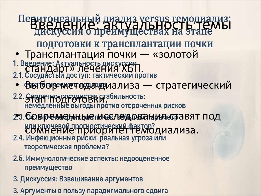 Введение: актуальность темы• Трансплантация почки — «золотой