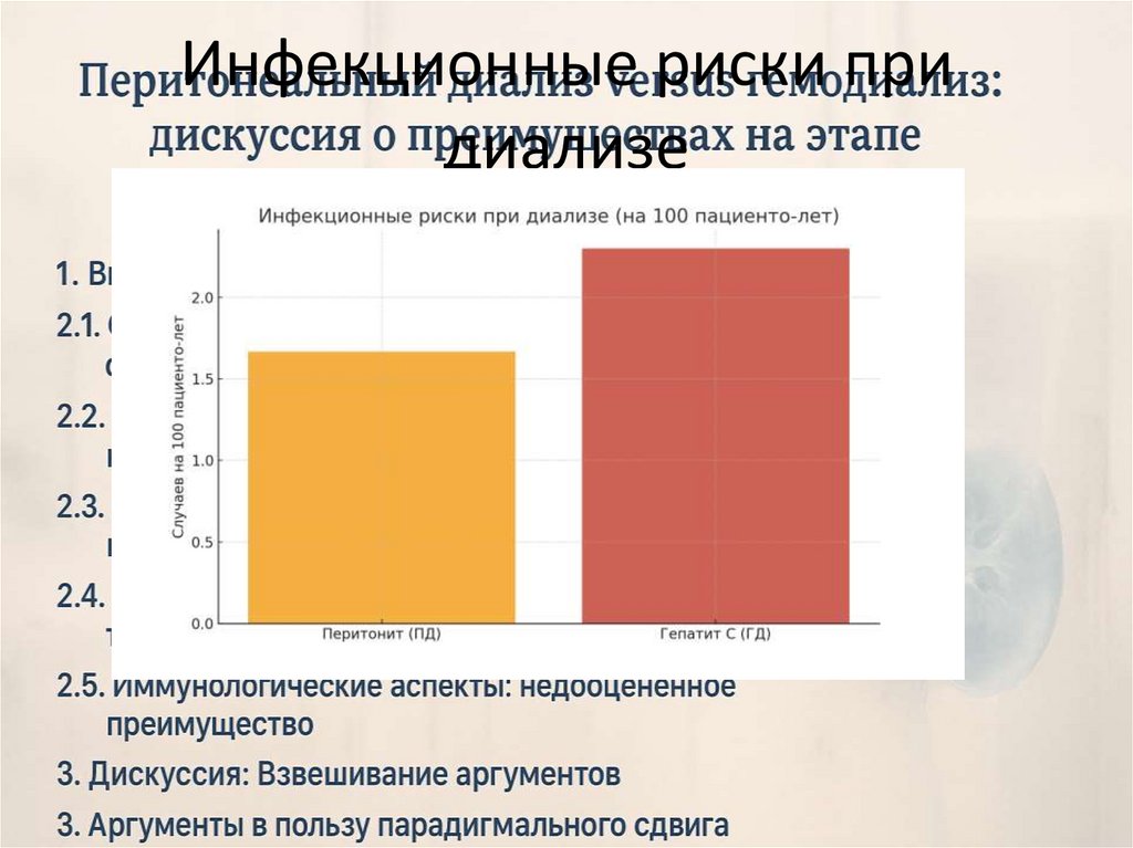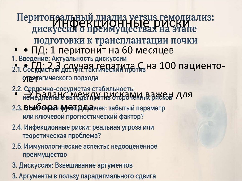 Инфекционные риски• • ПД: 1 перитонит на 60 месяцев