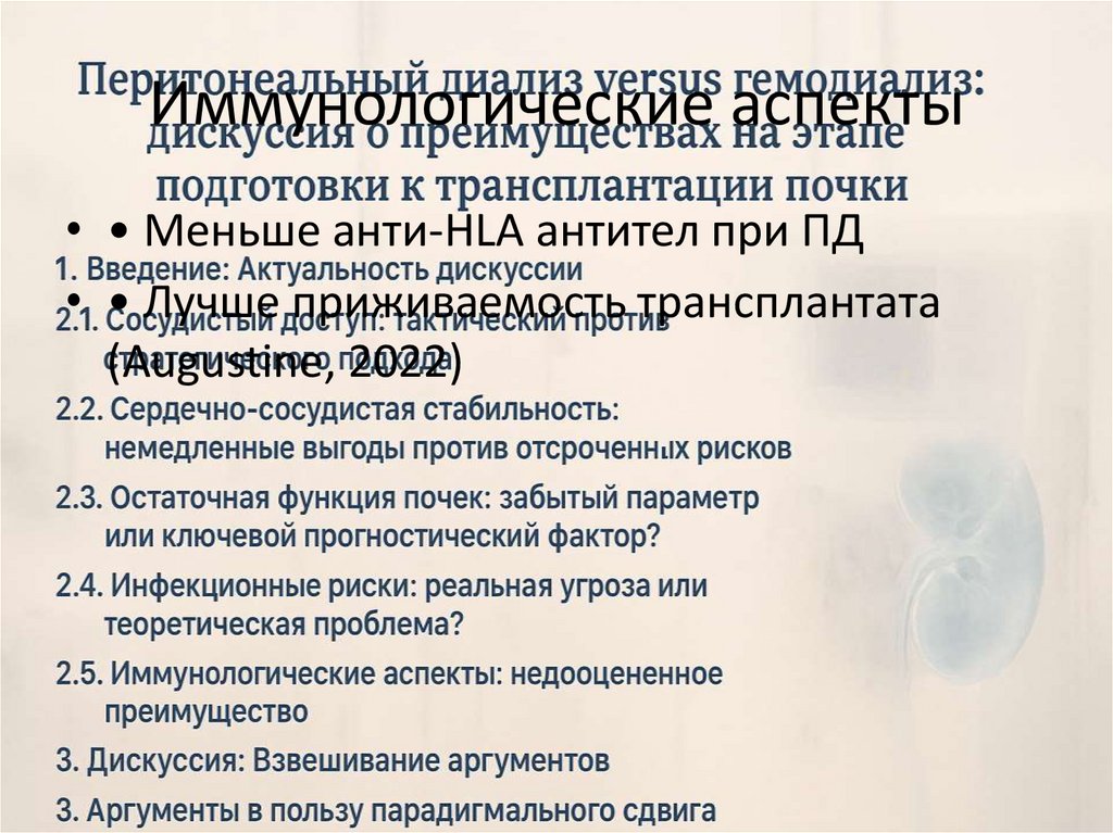 Иммунологические аспекты• • Меньше анти-HLA антител при ПД