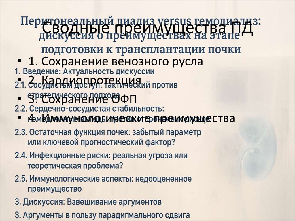 Сводные преимущества ПД• 1. Сохранение венозного русла