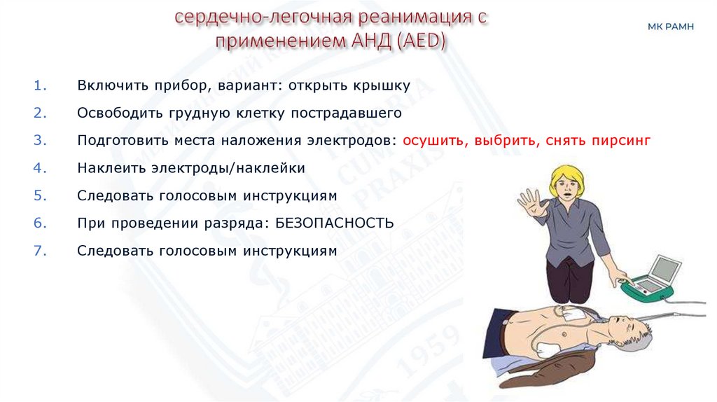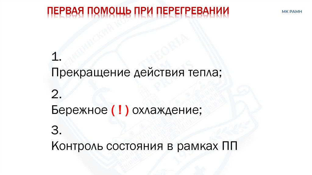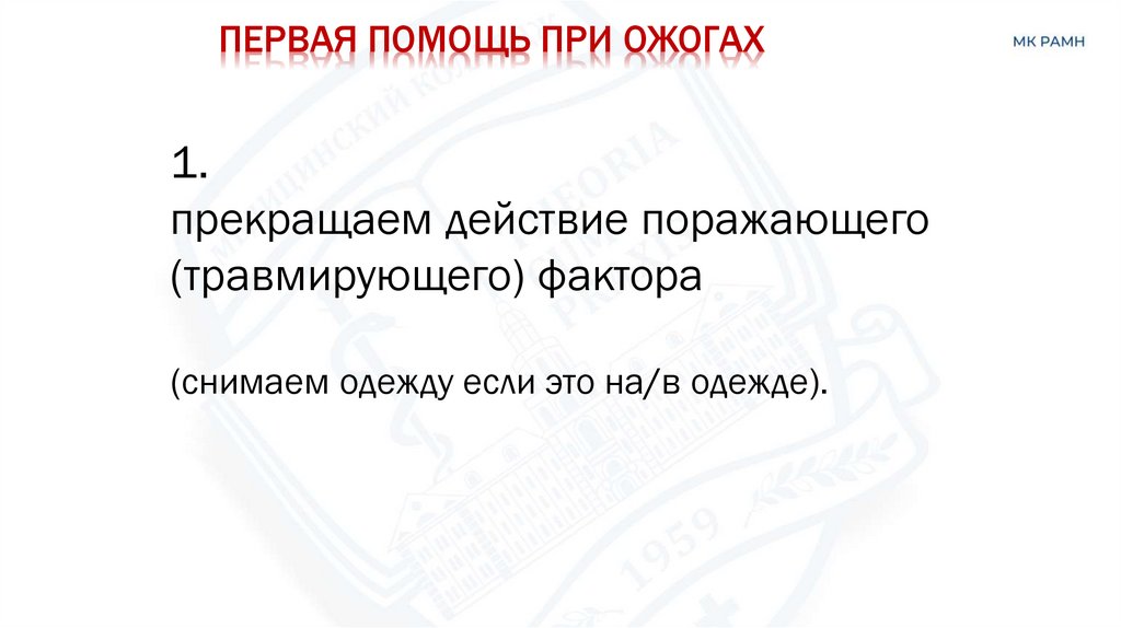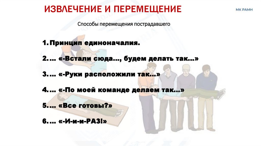 1. Прекращение действия газа;Вынос пострадавшего / проветривание