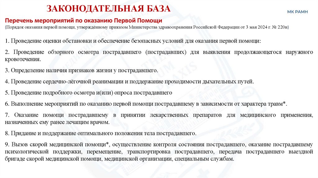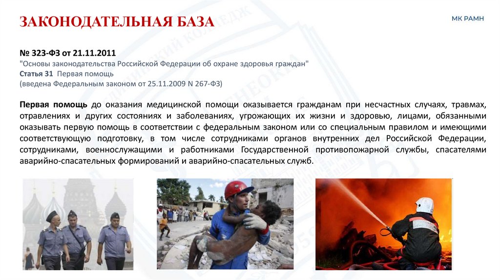 оказывать первую помощь в соответствии с федеральным законом или со специальным правилом и имеющими
