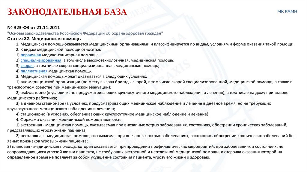 ЗАКОНОДАТЕЛЬНАЯ БАЗА№ 323-ФЗ от 21.11.2011