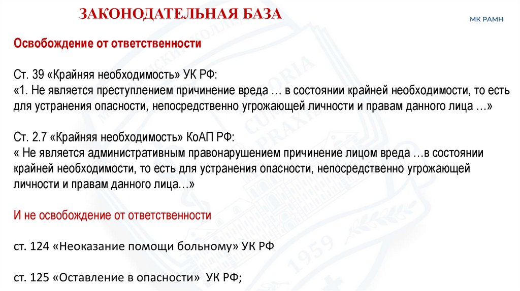 Ст. 39 «Крайняя необходимость» УК РФ: