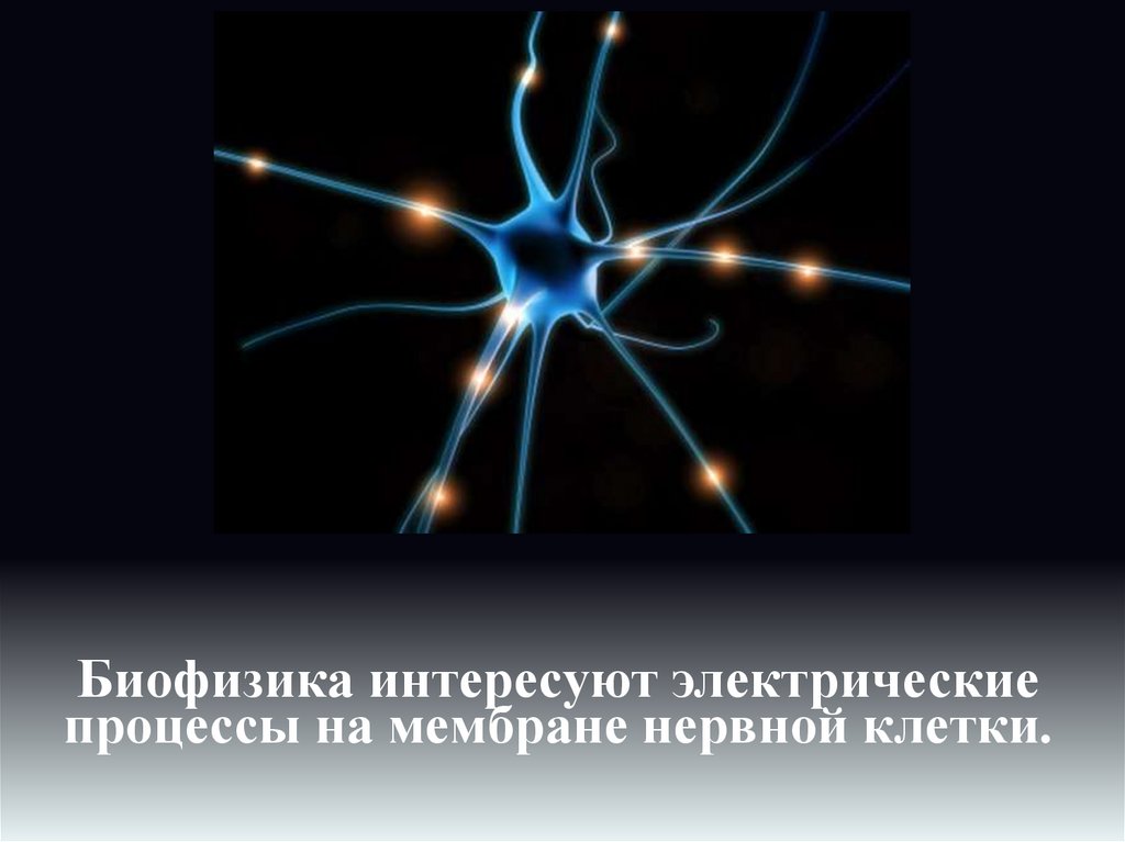 Биофизика интересуют электрическиепроцессы на мембране нервной клетки.