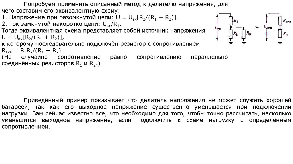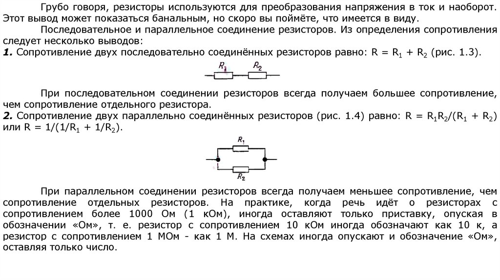 1. Сопротивление двух последовательно соединённых резисторов равно: R = R1 + R2 (рис. 1.3).