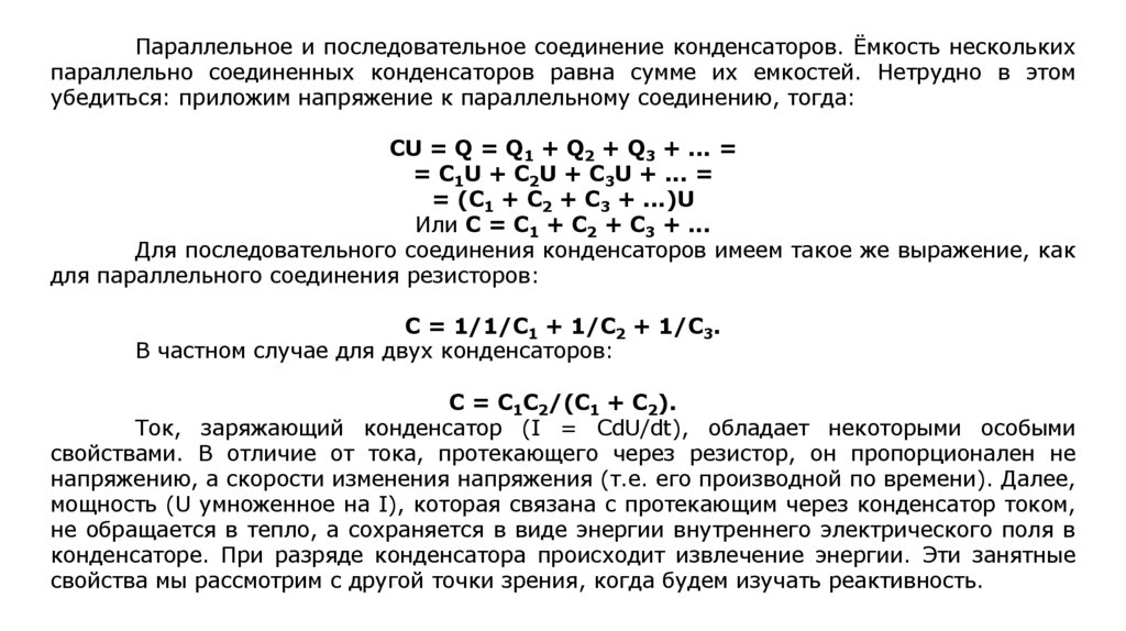 через него переменному току зависит от конструкции конденсатора, определяющей