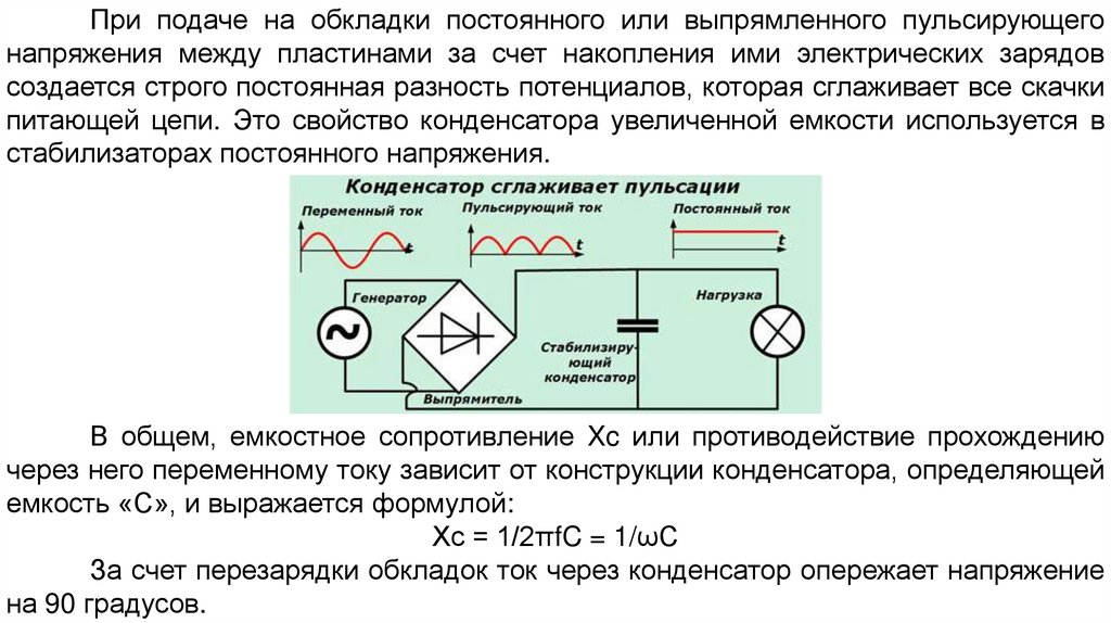 В общем, емкостное сопротивление Xc или противодействие прохождению