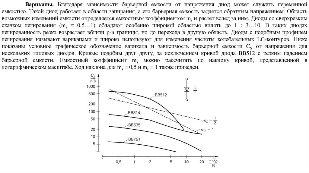 конденсаторы (ток пропорционален скорости изменения напряжения), диоды (ток протекает