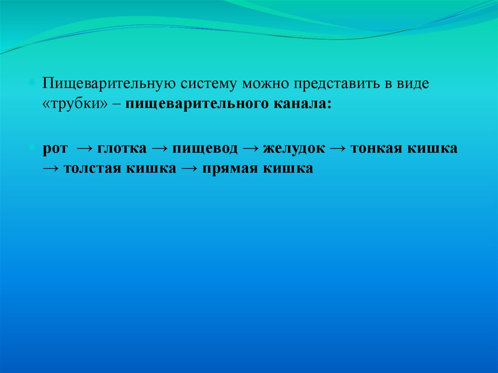 Пищеварительную систему можно представить в виде«трубки» – пищеварительного канала: