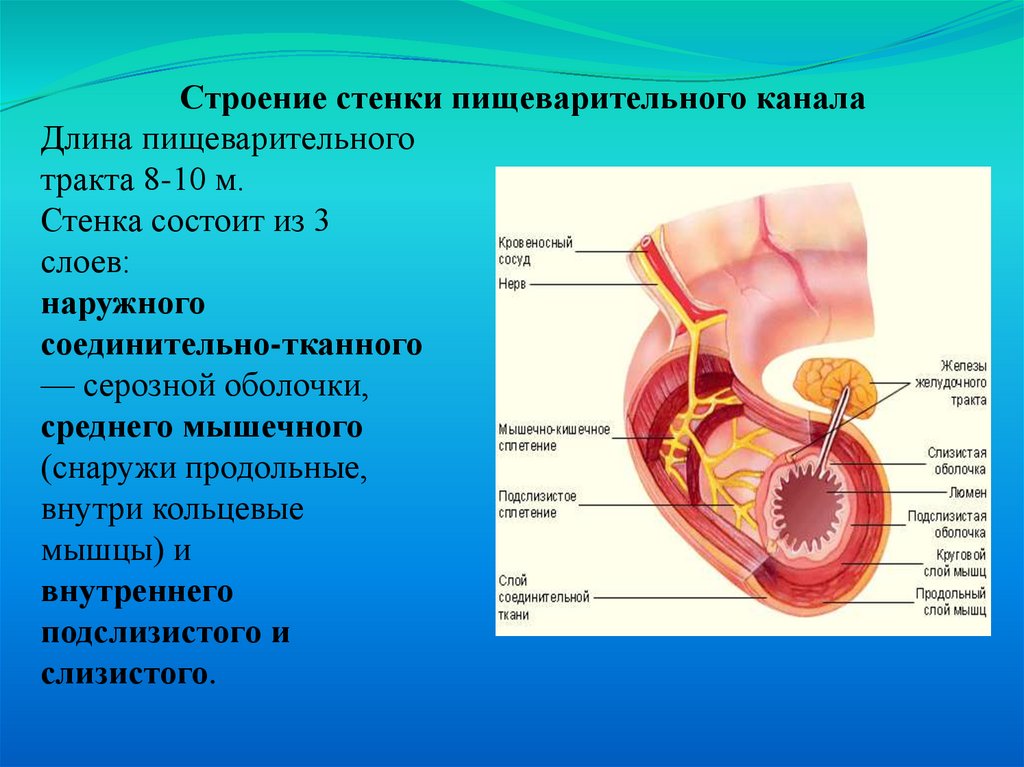 Строение стенки пищеварительного каналаДлина пищеварительного