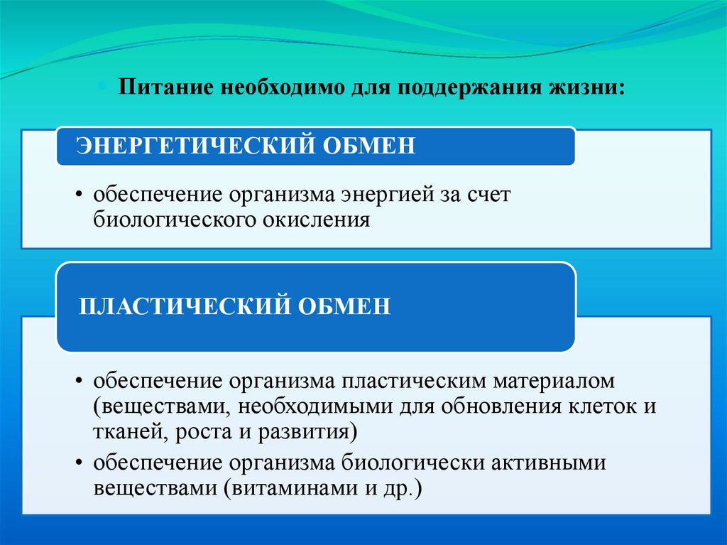 Питание необходимо для поддержания жизни:ЭНЕРГЕТИЧЕСКИЙ ОБМЕН