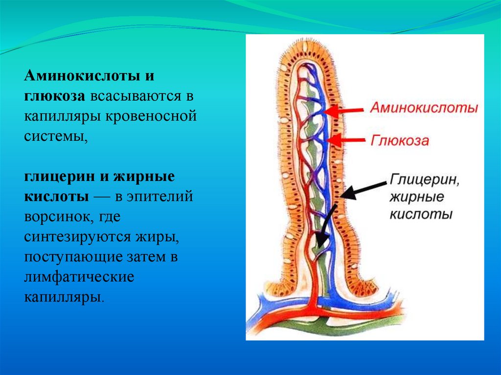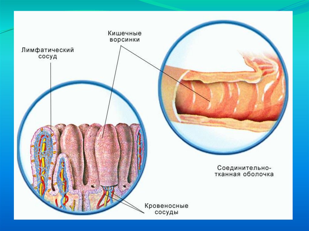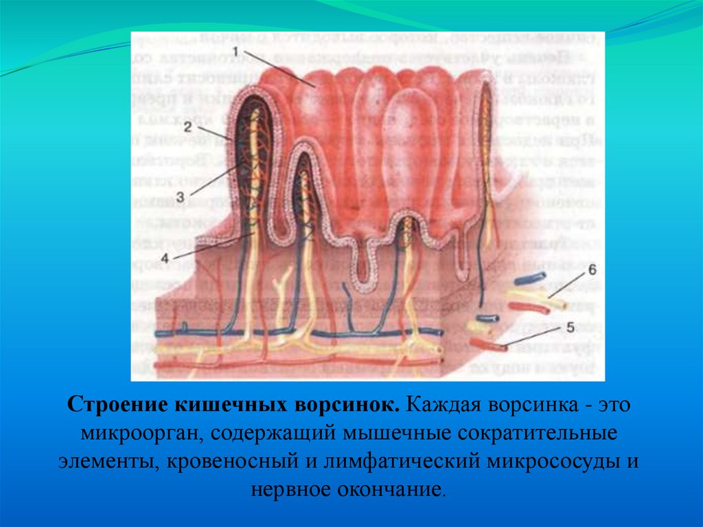 Строение кишечных ворсинок. Каждая ворсинка - этомикроорган, содержащий мышечные сократительные