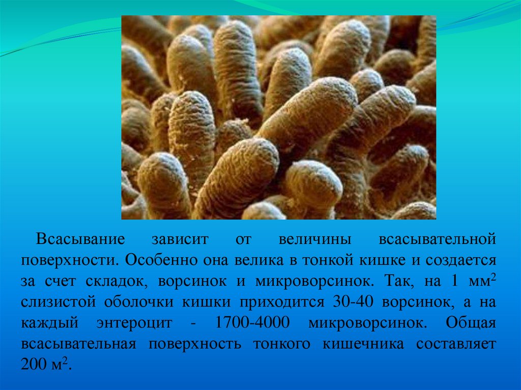 за счет складок, ворсинок и микроворсинок. Так, на 1 мм2