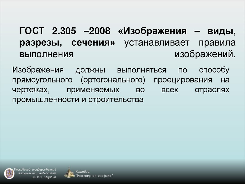 ГОСТ 2.305 –2008 «Изображения – виды,разрезы, сечения» устанавливает правила