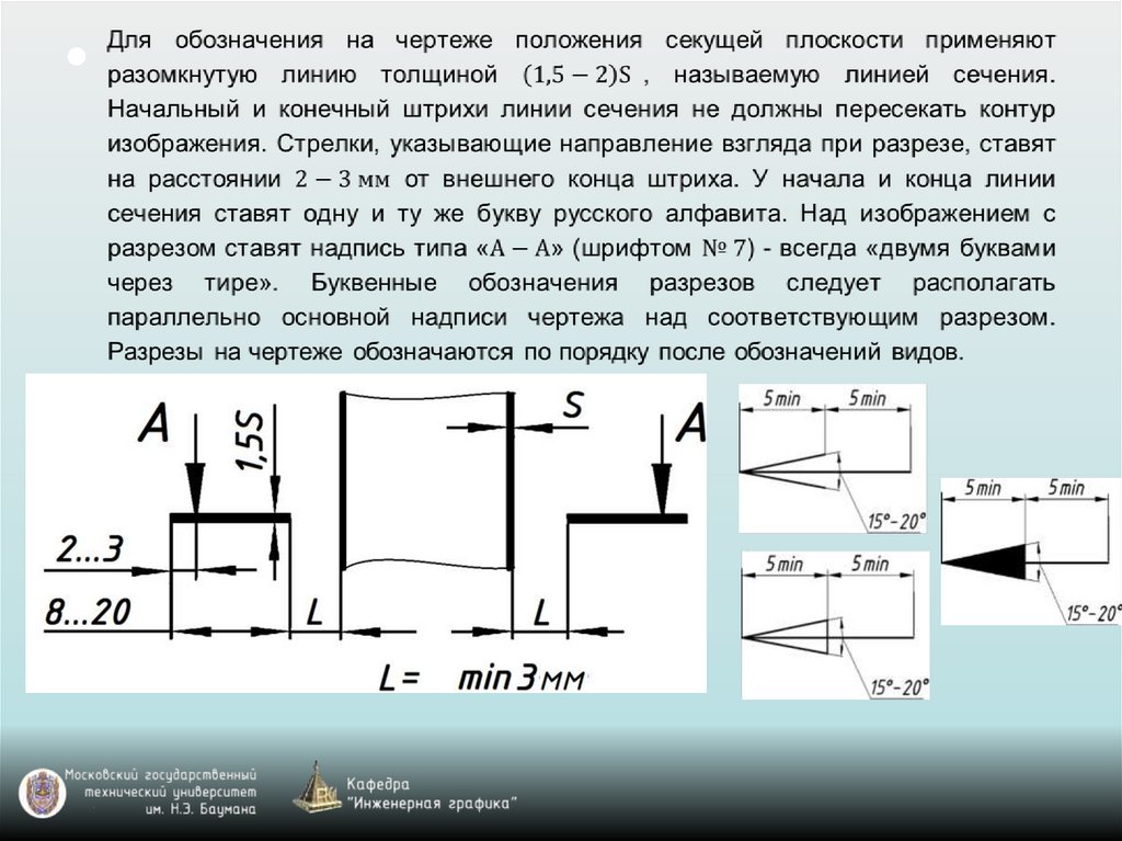 обозначениями разрезов. Рабочее поле формата должно быть в среднем на